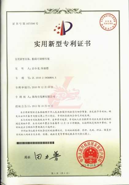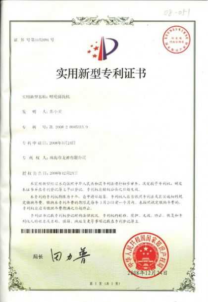 調(diào)漆裝置專利證書