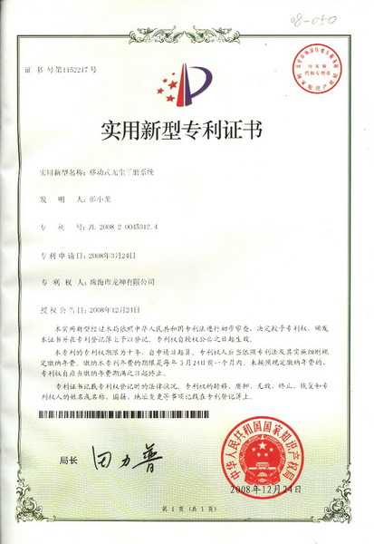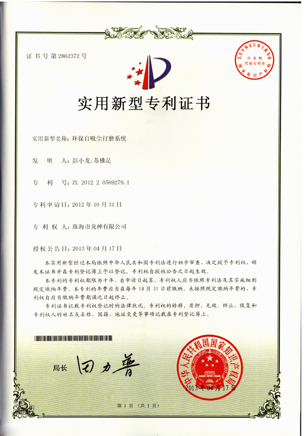 移動(dòng)式無塵干磨專利證書