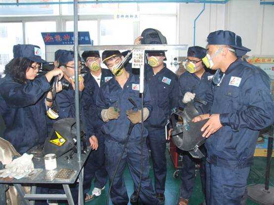老師們實(shí)操焊接