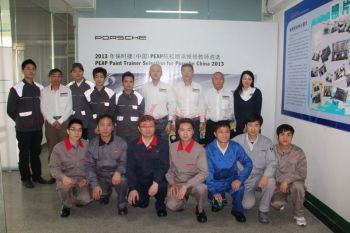 本司訊:2013年4月北京晴空萬里,龍神公司特邀英國專家一行五人,來到了北京車爵士進(jìn)行汽車噴涂遮蔽技術(shù)交流。首先公司一行了解車爵士的汽車噴涂情況及詢問了使用的遮蔽工具情況。隨后英國專家針對在汽車噴漆時難噴涂的車門縫隙、玻璃死角等地方的專業(yè)遮蔽工具的演示。車縫泡沫膠:用于車身所有縫隙的遮蔽,有效隔離及遮蔽漆霧噴入車縫里。