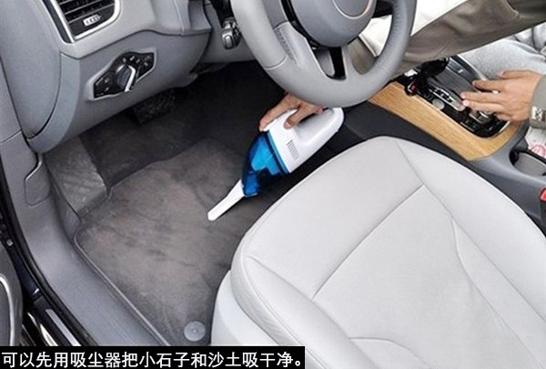 車輛的地面往往有很多沙土或小石子等臟東西,要把他們清理干凈,最簡單的方法就是用吸塵器。如果家里條件允許,可以使用家用吸塵器,因為這種吸塵器吸力大、效果明顯,而市場上經??吹降能囕d吸塵器一般吸力比較小,用起來比較費勁,但如果不具備使用家用吸塵器的條件,也只能用車載吸塵器將就一下了。