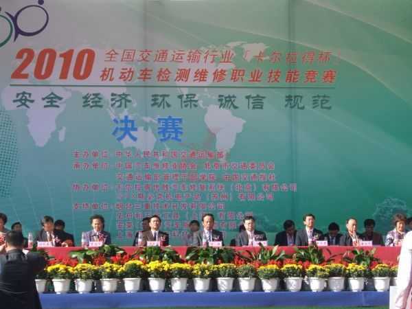 10月14日-15日,由交通運(yùn)輸部舉辦的全國交通運(yùn)輸行業(yè)“卡爾拉得杯”機(jī)動車檢測維修職業(yè)技能競賽決賽在北京交通運(yùn)輸部管理干部學(xué)院舉行。來自全國24個?。▍^(qū)、市)的238名選手參加了本次競賽決賽。交通運(yùn)輸部副部長馮正霖出席開幕式并宣布決賽開始,競賽組委會主任、交通運(yùn)輸部人事勞動司司長兼評價中心主任何捷講話。本次競賽活動龍神公司設(shè)立產(chǎn)品展覽攤位,展出包括競賽產(chǎn)品在內(nèi)共計100余件,得到了領(lǐng)導(dǎo)及院校的一致好評。
