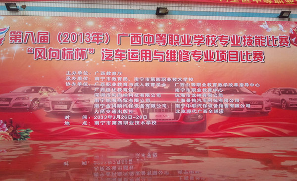 2013年3月28日,珠海龍神有限公司協(xié)辦的第八屆(2013年)全區(qū)中等職業(yè)學(xué)校專業(yè)技能比賽,“風(fēng)向標(biāo)”杯汽車運(yùn)用與維修專業(yè)項(xiàng)目比賽廣西賽區(qū)在南寧市第四職業(yè)技術(shù)學(xué)校鳴鑼收兵,84人(42組)載譽(yù)而歸。