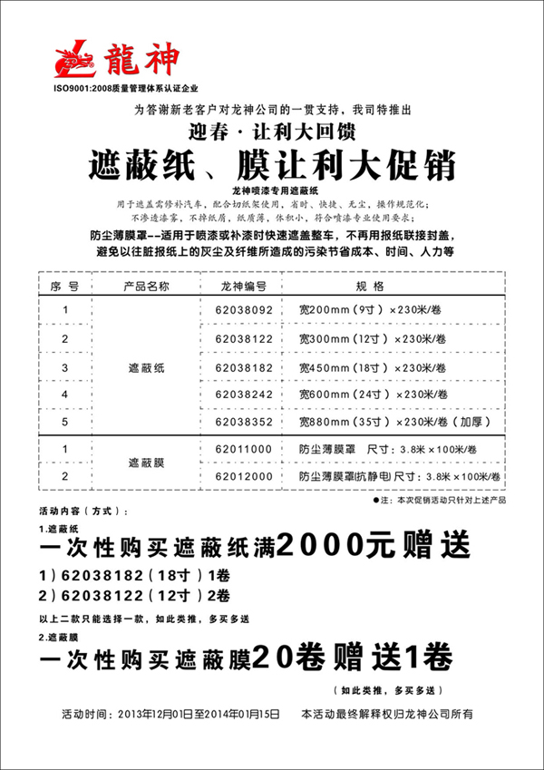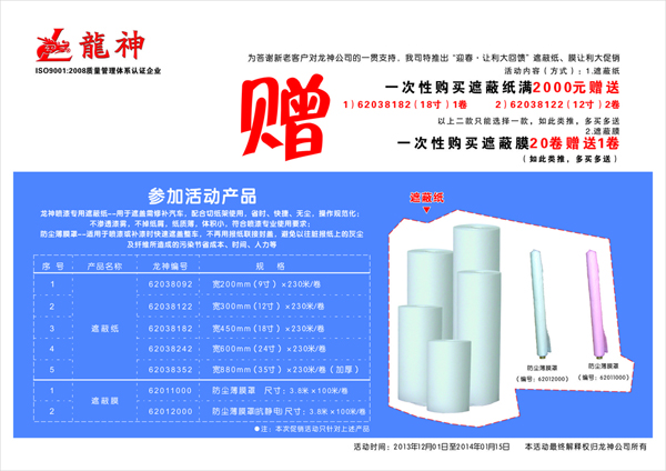 一次性買滿遮蔽膜20卷贈(zèng)送1。如此類推,多買多送。