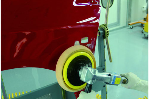 2. 再用打磨機打磨整個中涂底漆區(qū)域與舊漆膜。