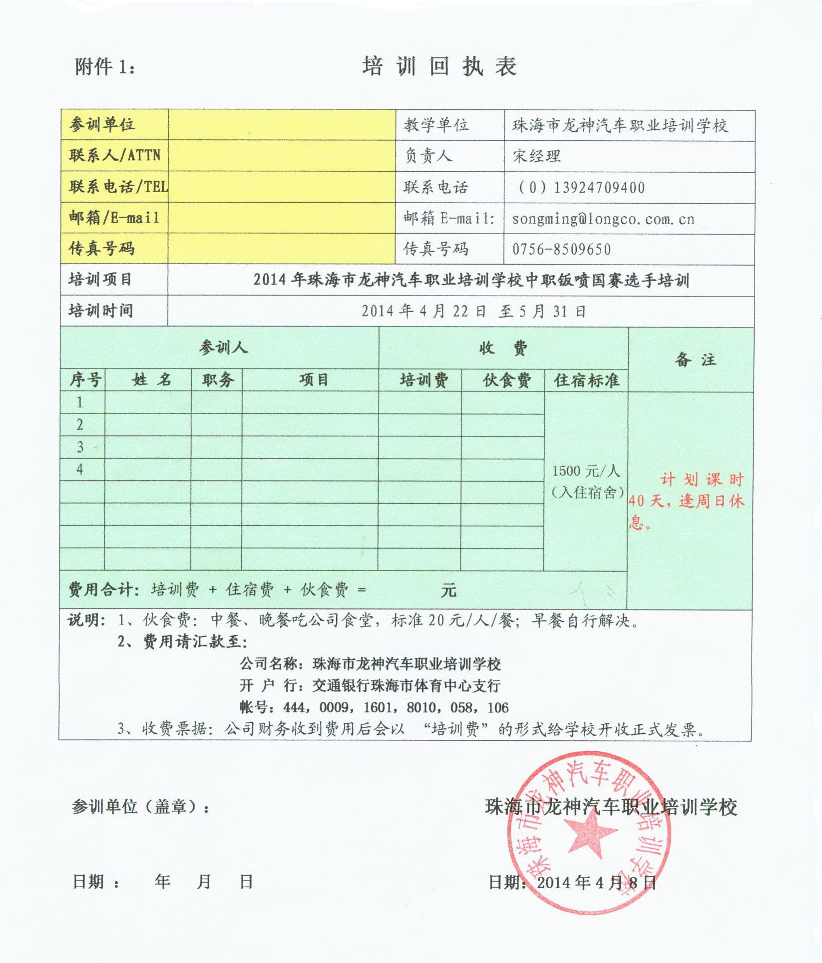 2014年度珠海市龍神汽車職業(yè)培訓學校暑期師資培訓知會函