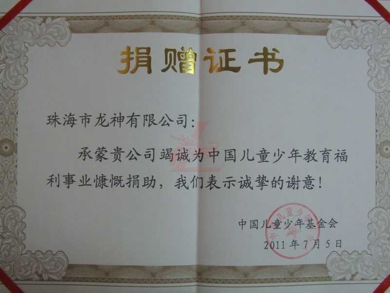中國兒童少年基金會成立30周年--珠海龍神捐愛心 2011年7月5日,紀(jì)念中國兒童少年基金會成立30周年愛心單位和個人捐贈儀式在北京人民大會堂舉行。全國人大常委會副委員長陳至立出席捐贈儀式,為愛心單位和個人頒發(fā)捐贈證書并講話。 我司為支持中國兒童少年基金會的發(fā)展捐獻(xiàn)了自己的愛心,為著祖國的未來貢獻(xiàn)一份綿力。 陳至立發(fā)表講話 我司代表陳經(jīng)理獲愛心單位捐贈證書 捐贈儀式現(xiàn)場 受社會各界關(guān)心的春蕾班小朋友表演舞蹈以表感謝 中國兒童少年基金會 2011-07-21 10676